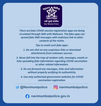 दुसरीकडे लशींसाठी होणारी गर्दी पाहता, काही समाजकंटकांकडून फेक अॅप बनवून बोगस नोंदणीद्वारे नागरिकांची फसवणूक करण्यात येत आहे. त्यामुळे, पोलिसांनी सावधानतेचा इशारा दिला आहे.