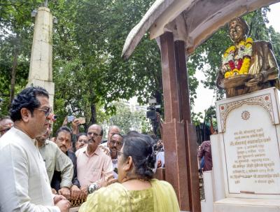 Meenatai Thackeray Statue In Dadar Mumbai News: दादरमधील शिवाजी पार्क येथे दिवंगत मीनाताई ठाकरे यांच्या पुतळ्यावर लाल रंग फेकण्यात आल्याची घटना बुधवारी सकाळी घडली. या घटनेची माहिती मिळताच उद्धवसेनेचे पक्षप्रमुख उद्धव ठाकरे, आदित्य ठाकरे व मनसे अध्यक्ष राज ठाकरे यांनी पुतळास्थळी जाऊन पाहणी केली.