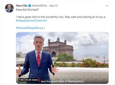 भारतातील ब्रिटिश उच्चायुक्त ॲलेक्स एलिस ७ ते ९ सप्टेंबरदरम्यान मुंबईच्या दौऱ्यावर होते. या दौऱ्यात त्यांनी दिग्गज नेत्यांपासून सर्वसामान्य डबेवाल्यांपर्यंत अनेकांची भेट घेतली.