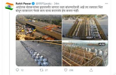 सरकारने शेतकऱ्यांच्या ह्रदयापर्यंत जाणारा रस्ता बांधायला हवा, त्याऐवजी अडवणूक करणाऱ्या भिंती काय बांधता, असे रोहित यांनी आपल्या ट्विटर अकांटवरुन म्हटलंय.