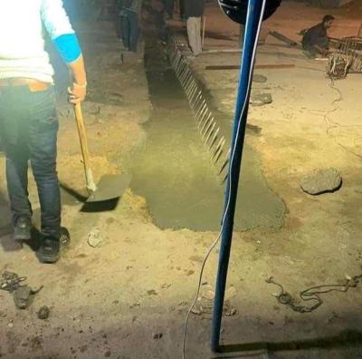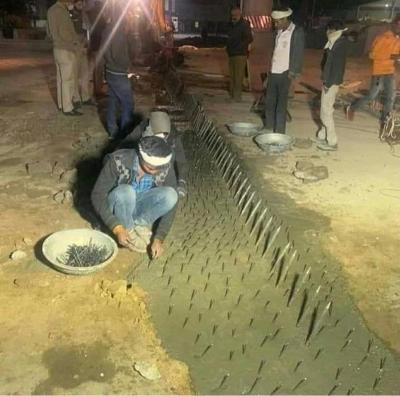 सिमेंटच्या सळया ठोकताना मजूर कारागिर या फोटोत दिसत आहे, आंदोलक शेतकऱ्यांना जागीच थाबविण्याचा हा प्रयत्न आहे.