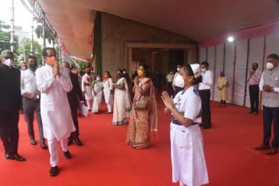 ध्वजारोहण झाल्यानंतर मुख्यमंत्र्यांनी कोविड योद्धे, डॉक्टर्स, नर्सेस, वैद्यकीय सहायक तसेच कोरोनावर मात केलेल्या नागरिकांना भेटून त्यांचे कौतुक केले.
