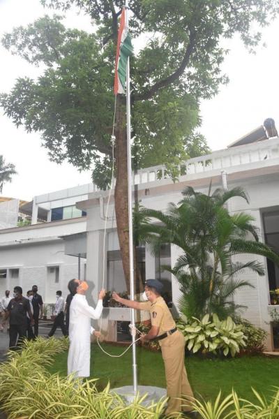 भारतीय स्वातंत्र्याच्या वर्धापन दिनाच्या निमित्ताने मुख्यमंत्री उद्धव बाळासाहेब ठाकरे यांनी आज वर्षा या शासकीय निवासस्थानी ध्वजवंदन केले.
