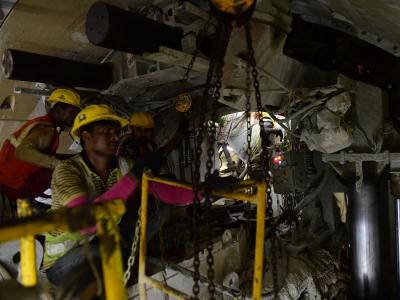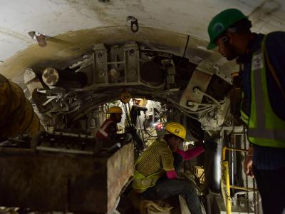 कुलाबा-वांद्रे-सीप्झ या मेट्रो-3 मार्गिकेतील सर्वात महत्त्वाचे आणि आव्हानात्मक असलेले मिठी नदीच्या खालून करण्यात येत असलेले भुयारीकरणाचे काम मुंबई मेट्रो रेल कॉर्पोरेशनतर्फे (एमएमआरसी) सुरू असून आता पूर्ण होण्याच्या मार्गावर आहे. (सर्व फोटो - दत्ता खेडेकर)