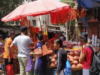 गुढी पाडवा साजरा करण्यासाठी बाजारात काही गाड्यांवर साहित्य उपलब्ध करण्यात आले आहे.