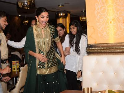 हिरव्या रंगाचा शरारा व लाँग कुर्तामध्ये दीपिका खूपच सुंदर दिसत होती.