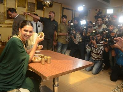 राजस्थानी थाळीचा स्वाद घेताना दीपिका खूपच खूश दिसत होती. यावेळी तिने चाहत्यांसोबत सेल्फीही घेतला.
