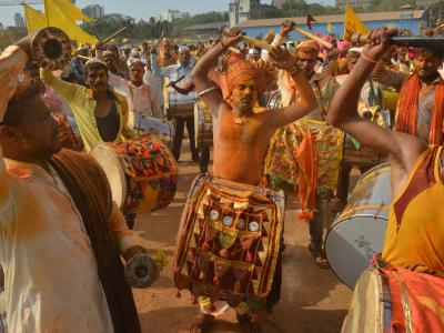 ढोल वाजवत भंडारा उधळत शेकडो धनगर बांधव आझाद मैदानात एकवटले.