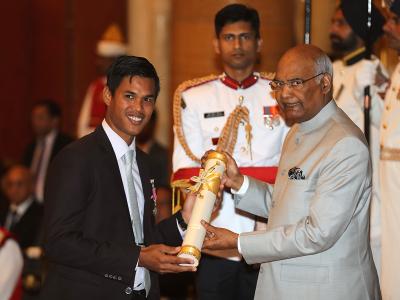 राष्ट्रपती रामनाथ कोविंद यांनी किदांबी श्रीकांत आणि अल्मारवाई यांना पद्मश्री पुरस्कार प्रदान केले.