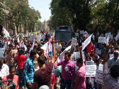 रोजगार, शिक्षणाच्या हक्कासाठी डीवायएफआय आणि एसएफआयने शुक्रवारी मुंबईत हल्लाबोल आंदोलन केले. (छायाचित्रे - सुशील कदम)