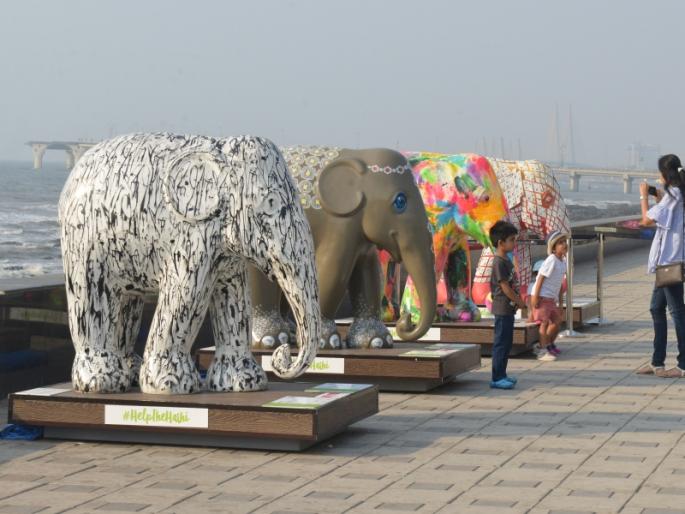 मुंबईत एलिफंट परेड प्रदर्शनात साकारल्या हत्तींच्या शिल्पाकृती