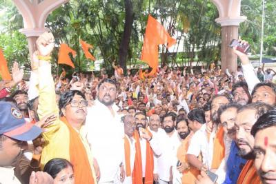 बांगर यांनी उद्धव ठाकरेंच्या निर्णयाला विरोध करत आज मुंबईतील सह्याद्री अतिथीगृह येथे आमदार संतोष बांगर यांनी जोरदार शक्तीप्रदर्शन केलं.