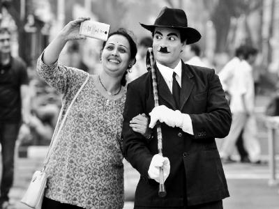 मिशांची वेगळी स्टाइल, बॉलर हॅट, हातातील लहानशी छडी आणि चालण्याचा एक निराळा अंदाज, यामुळे चार्ली चॅप्लिनने विनोदाच्या जगात आपली एक वेगळीच छाप उमटवली. ज्याने मूक राहूनही आपल्या अप्रतिम हास्यअभिनयाने लोकांना इतके हसवले की जगातील कोणतीही विनोदी मालिका पाहिल्यावर त्याची आठवण झाल्याशिवाय राहत नाही. (सर्व छायाचित्रे - सुशिल कदम)