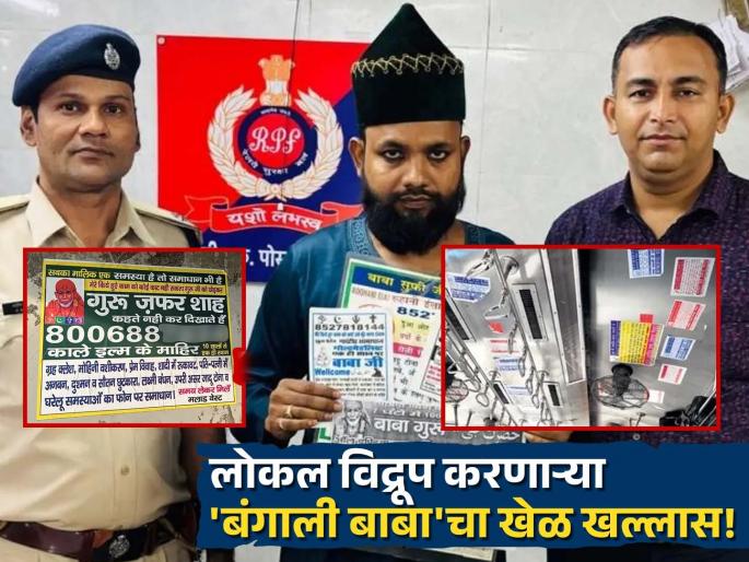 1 / 9मध्य आणि पश्चिम रेल्वेच्या संयुक्त आरपीएफ पथकाने रेल्वे डब्यात स्टिकर चिटकविणाऱ्या बंगाली बाबाला अटक केल्याची घटना समोर आली आहे.2 / 9रे रोड परिसरात मोहम्मद नझीर अंदारी नावाचा व्यक्ती 'बंगाली बाबा' म्हणून काम करत असल्याचं आरपीएफला समजलं होतं. 3 / 9मिळालेल्या माहितीच्या आधारे दारूखाना येथील मीरा अली दर्गा येथे संयुक्त छापा टाकत मंगळवारी ही कारवाई केल्याचं अधिकाऱ्यांनी सांगितलं. 4 / 9बंगाली बाबाकडून सुमारे १५ हजार छापील पोस्टर्स जप्त करण्यात आले. चौकशीत आरोपी असलेल्या मोहम्मदने रेल्वे प्रशासनाची कोणतीही परवानगी न घेता हे केल्याचं समोर आलं. 5 / 9व्यावसायिक हेतूंसाठी रेल्वेचे डबे व परिसराचा वापर करून जाहिरात साहित्य चिकटवलं असल्याचं कबुली बंगाली बाबाने दिली आहे. 6 / 9रेल्वे कायद्याच्या संबंधित कलमांखाली वडाळा पोलीस ठाण्यात गुन्हा नोंद करण्यात आला आहे. लोकलमध्ये मोठ्या प्रमाणात बंगाली बाबाचे पोस्टर्स चिटकवलेले दिसतात.7 / 9पुढील तपासांत प्रचार साहित्य छापणं व चिकटविणं यामध्ये इतर व्यक्तींचाही सहभाग असल्याचं उघड झालं असून संबंधितांचा शोध सुरू आहे. 8 / 9बंगाली बाबाचे पोस्टर्स तयार करणाऱ्या मुद्रण संस्थांशी संबंधित आर्थिक व्यवहारांचीही चौकशी करण्यात येत असल्याचं अधिकाऱ्यांनी सांगितलं. 9 / 9मालमत्तेचे रेल्वे विद्रुपीकरण व अनधिकृत जाहिरात करणं हा दंडनीय गुन्हा आहे. नागरिकांनी रेल्वे किंवा गाड्यांमध्ये परिसरात परवानगीशिवाय पोस्टर्स अथवा सूचना लावू नयेत असं आवाहन करण्यात आलं आहे.