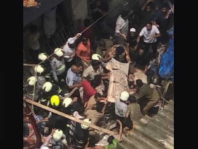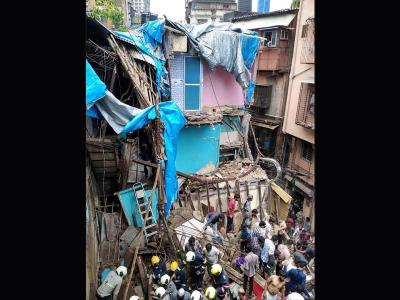 मुंबईच्या डोंगरी भागातील कौसरबाग इमारतीचा निम्मा भाग दुपारी १२ च्या सुमारास कोसळली.