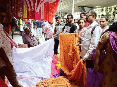 गणेशोत्सव अवघ्या पाच दिवसांवर येऊन ठेपला आहे. त्यामुळे खरेदीसाठी चाकरमान्यांची लगबग सुरू झाली आहे. दादर, लालबागसह मुंबईतील सर्व लहान-मोठ्या मार्केटला जत्रेचे स्वरूप प्राप्त झाले आहे. रंगरंगोटीचे सामान, गणेश अलंकार, तोरणे, रांगोळ्या, मखर, रंगीबेरंगी पडदे, विद्युत रोषणाईचे सामान, गौरीच्या मूर्ती, धूप-कापूर, सुवासिक अगरबत्ती, विविध प्रकारचे मोदक; त्याचप्रमाणे भजनासाठी लागणारे टाळ, मृदंग आणि ढोलकी खरेदी करण्यासाठी ग्राहकांची झुंबड उडत आहे. गणेशभक्तांचा हा खरेदीचा उत्साह छायाचित्रित केला आहे, ‘लोकमत’चे वरिष्ठ छायाचित्रकार दत्ता खेडेकर यांनी...
