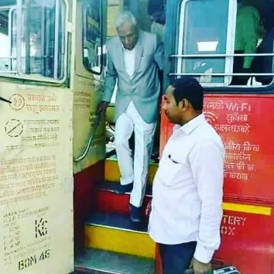 सोशल मीडियात त्यांच्या बसने प्रवास करण्याच्या किस्स्यांनी अनेकांना लिहतं केलं, बोलतं केला. त्यामुळेच त्यांचा बसमधून उतरतानाचा फोटो व्हायरल झाला आहे. तर, या फोटोसोबत फिरणारेही कॅप्शनही विचार करायला भाग पाडणार आहे.