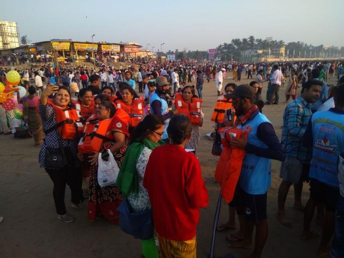 1 / 4जुहू चौपाटीवर जुहू मोरागाव मच्छीमार विविध कार्यकारी सहकारी सोसायटीने महाराष्ट्र मेरिटाईम बोर्डाच्या परवानगीने येथे येणाऱ्या पर्यटकांसाठी खास 21 डिसेंबर 2017 पासून बोटिंग राईड सेवा सुरू केली आहे. 2 / 4गळ्यात जॅकेट घालून 16 सीटर फेरीबोटीचा आणि 8 सीटर मोटर बोटीचा सुमारे 15 ते 20 मिनीटे या राईडचा आनंद पर्यटक लुटतात.3 / 4अथांग समुद्र,आकाशात दर तीन मिनिटांनी जाणारी विमाने आणि पर्यटकांनी फुललेल्या जुहू चौपाटी,सायंकाळी पालिकेने लावलेल्या एलइडी दिव्यांमुळे कुटुंबासह बोटिंग राईडचा थ्रिलिंग मनमुराद आनंद मिळत आहे.4 / 4 - दिल्ली,बिहार,मध्यप्रदेश येथील पर्यटकांनीसुद्धा या थ्रिलिंग बोटिंग राईडचा मनमुराद आनंद घेण्यासाठी हजेरी लावली.