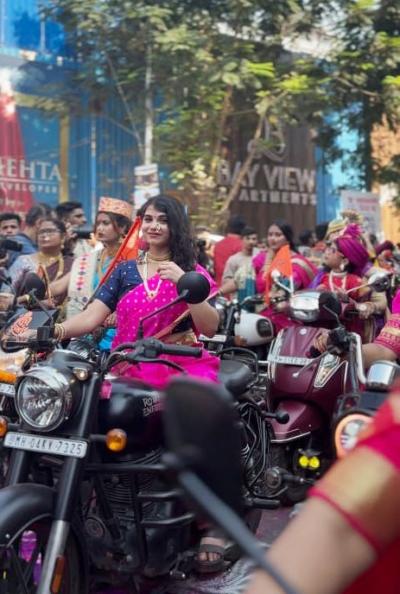 सुंदरतेचा साज...बुलेटवर निघाल्या सौंदर्यवती! गिरगावच्या शोभायात्रेत नारीशक्तीचा जलवा