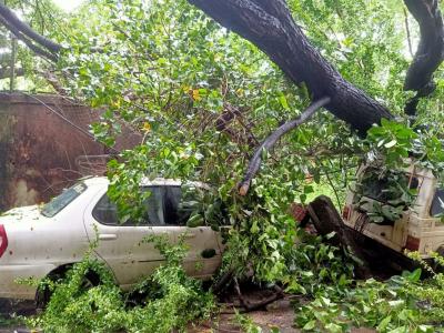 ठाण्यातील दादोजी कोंडदेव स्टेडियम येथील भिंत खचल्यामुळे जवळ उभ्या असलेल्या रुग्णवाहिकेचे मोठे नुकसान झाले आहे.