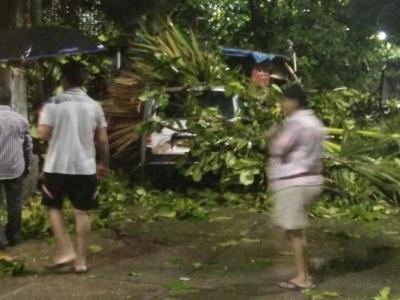पावसाबरोबर वाहणाऱ्या सोसाट्याच्या वाऱ्यामुळे झाड पडल्याने एका कारचे नुकसान झाले.