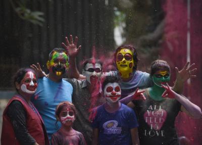 होळीच्या शुभेच्छा देताना, कोरड्या रंगात रंगलेल्या तरुणाईच्या चेहऱ्यावर होळीचा उत्साह दिसून येतंय