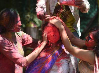 आपल्या मैत्रिणीला रंगात न्हावू घालताना, मित्रमंडळ. हे क्षण म्हणजे आनंदी आनंद गडे - सर्व फोटो: सुशील कदम