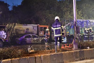 PHOTOS: धारावी स्फोटाची भीषणता! ट्रकसोबत आजूबाजूची वाहनंही बेचिराख, उरली फक्त राख!