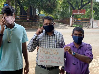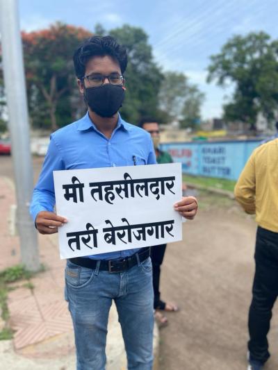 त्याच पार्श्वभूमीवर विद्यार्थ्यांनी आज वर्षपूर्तीचा झाल्याचा निषेध केक कापून साजरा केला. तसेच, मी तहसिलदार... मी बेरोजगार..., मी गटविकास अधिकारी... मी भिकारी... अशा आशयाचे फलकही झळकावले आहेत.