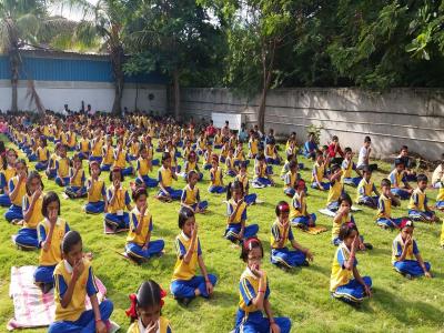 जागतिक योग दिनानिमित्त डबेवाले संस्थेचे प्रवक्ते सुभाष तळेकर यांनी कमलाबाई एज्युकेशन ट्रस्ट (विक्रोळी) मधील विद्यार्थांना योगाभ्यासाचे धडे दिले