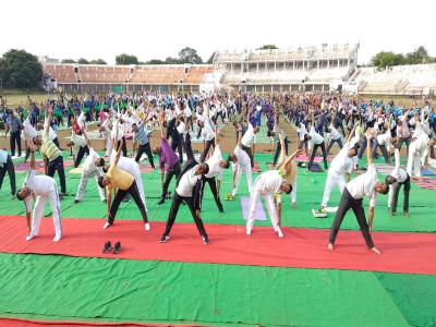 सोलापुरात लहान मुलांनी घेतला योग महोत्सवात सहभाग