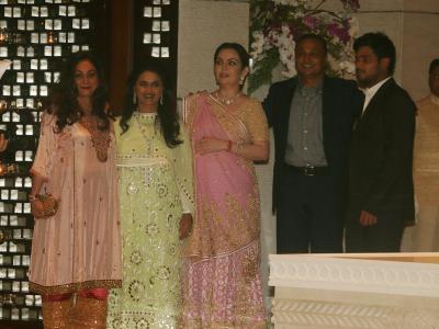 रिलायन्स समूहाचे अध्यक्ष मुकेश अंबानी यांची कन्या ईशा अंबानी आणि आनंद पिरामल यांच्या साखरपुड्याची पार्टी अंबानींच्या एँटिलिया निवासस्थानी पार पडली.