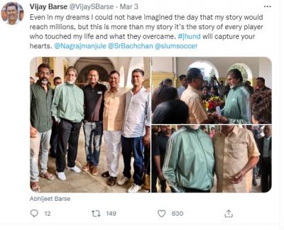 विजय बारसे यांनी आपल्या ट्विटर अकाऊंटवरुनही अमिताभ बच्चन आणि नागराज मंजुळेंसोबतचे फोटो शेअर केले आहेत. यासोबत, माझी कथा कोट्यवधी लोकांपर्यंत पोहोचल्याचे बारसे यांनी म्हटले.