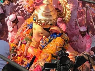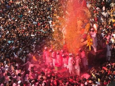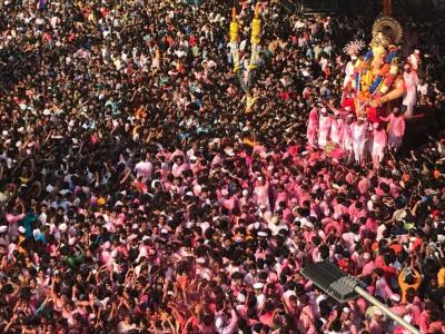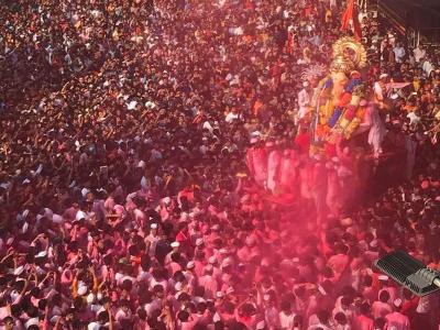गुलाल अन् भंडाऱ्याची उधळण, गणेशभक्तांची तोबा गर्दी अन् तरुणाईची सेल्फी काढण्यासाठी धडपड..