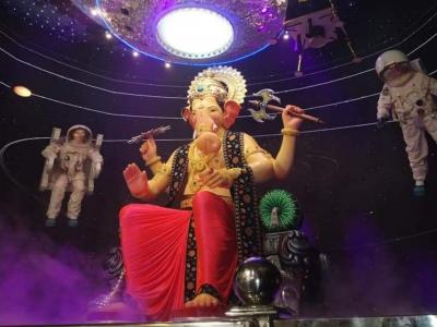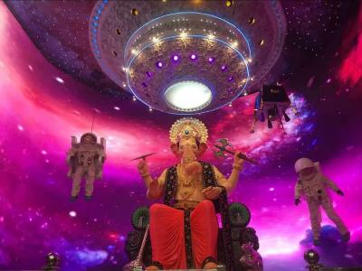 Lalbaugcha Raja 2019: लालबागचा राजाच्या दरबारात अवतरले अंतराळ