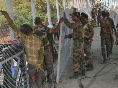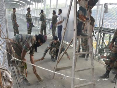 लष्कराकडून उभारल्या जाणा-या परळ आणि एल्फिन्स्टन रोड स्थानकातील पादचारी पुलाचं काम अंतिम टप्प्यात आलं आहे. (छाया- सुशिल कदम.)