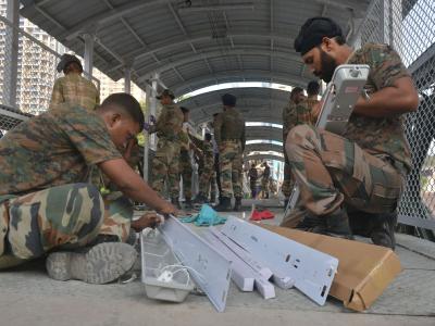 लष्काराचे जवान बारकाईने काम करताना पाहायला मिळाले. (छाया- सुशिल कदम.)