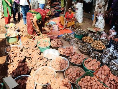 घराघरांत ठेवलेले मातीचे ढीग आणि रंग-मातीने माखलेली रंगीत माणसे हेच चित्र दिसते.