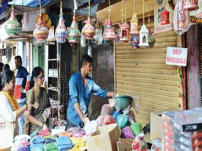 छोट्या पारंपरिक पणत्यांपासून ते मोठ्या कंदिलांपर्यंत दिसणाऱ्या दिव्यांनी कुंभारवाड्यातील घरे आणि दुकाने सजली आहेत.