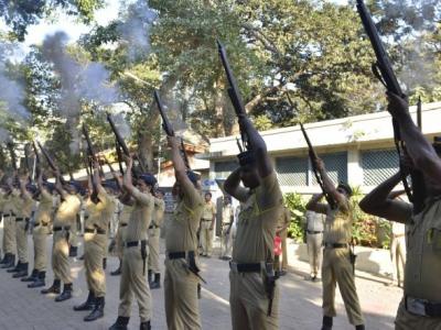 मंगेश पाडगावकर यांना पोलिसांनी बंदुकीच्या फैरी झाडून मानवंदना दिली.