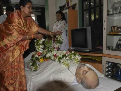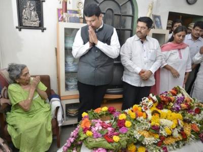 मुख्यमंत्री देवेंद्र फडणवीस यांनी ज्येष्ठ कवी मंगेश पाडगावकर यांच्या पार्थिवावर पुष्पचक्र अर्पण करुन अंतिम दर्शन घेतले. (फोटो : सुशील कदम)