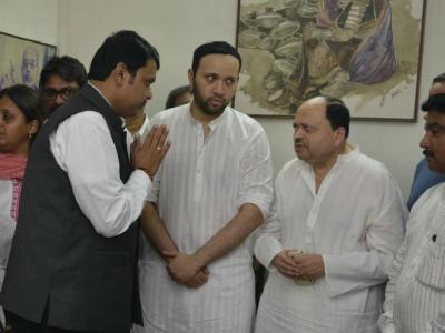 मंगेश पाडगावकर यांच्या कुटुंबियांचे सांत्वन करताना मुख्यमंत्री देवेंद्र फडणवीस.