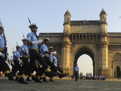 त्यानिमित्ताने मुंबईतील गेटवे ऑफ इंडियाच्या परिसरात नौदलाच्या जवानांनी बिटिंग द रिट्रिट कार्यक्रमाची रंगीत तालीम केली.