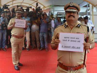 प्रकाश गजभिये यांच्या शहीद हेमंत करकरे लूकची मोठी चर्चा विधानभवन परिसरात झाली. गजभिये यांनी अनोख्या पद्धतीने निषेध व्यक्त केला.