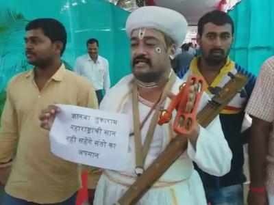 संत तुकाराम महाराजांच्या अपमान झाल्याचा निषेध नोंदवताना प्रकाश गजभिये यांनी संत तुकाराम यांचा वेश धारण केला होता.