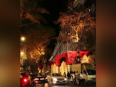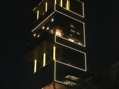 देशातील सर्वात महागड्या निवासस्थानांपैकी एक असलेलं अँटेलियाही एखाद्या नववधूप्रमाणे सजवण्यात आलं आहे.