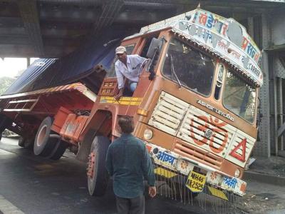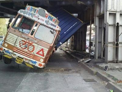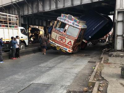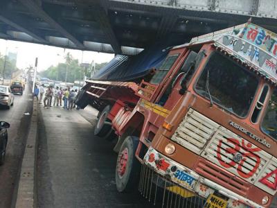मुंबई : किंग्स सर्कल रेल्वे पुलाखाली अडकला कंटेनर