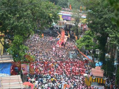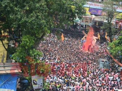 राज्यात आज मोठ्या थाटामाटात गणपती बाप्पाला निरोप देण्यात येत आहे. मुंबईतील गणेशोत्सव लालबागच्या उल्लेखाशिवाय अपूर्णच. गेली दोन वर्ष कोरोनामुळे निर्बंध आलेल्या गणेशोत्सवावर यावेळी कोणतीही बंधनं नव्हती. त्यामुळे लालबाग परिसर आज पुन्हा एकदा पूर्वीसारखा गर्दी आणि गुलालानं न्हाऊन निघालेला पाहायला मिळाला. (सर्व फोटो- दत्ता खेडेकर)