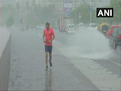 पावसाचा आनंद घेत व्यायाम करताना मुंबई