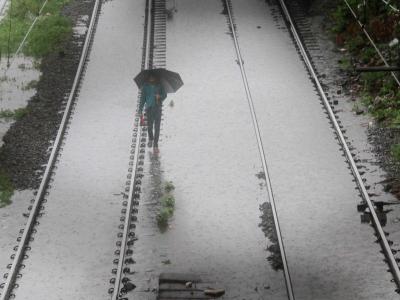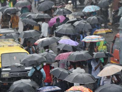 पावसामुळे सर्व रस्ते पादचारी अन् छत्र्यांनी व्यापले होते.
